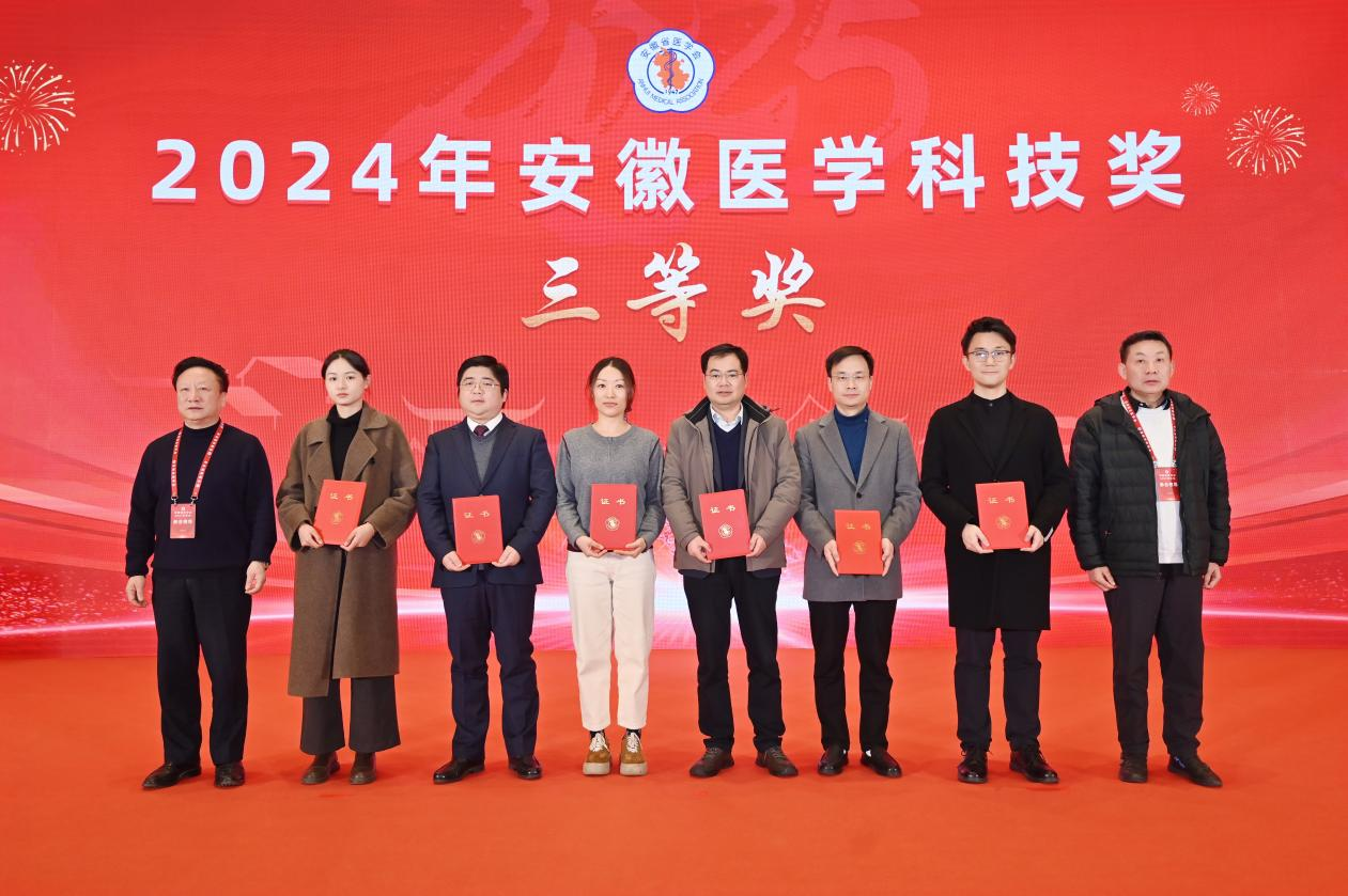 近日,安徽省医学会2025年年会暨第十二届理事会第三次会议在合肥召开。会上举行2024年安徽医学科技奖颁奖仪式,我校第一附属医院获二等奖1项、三等奖2项。