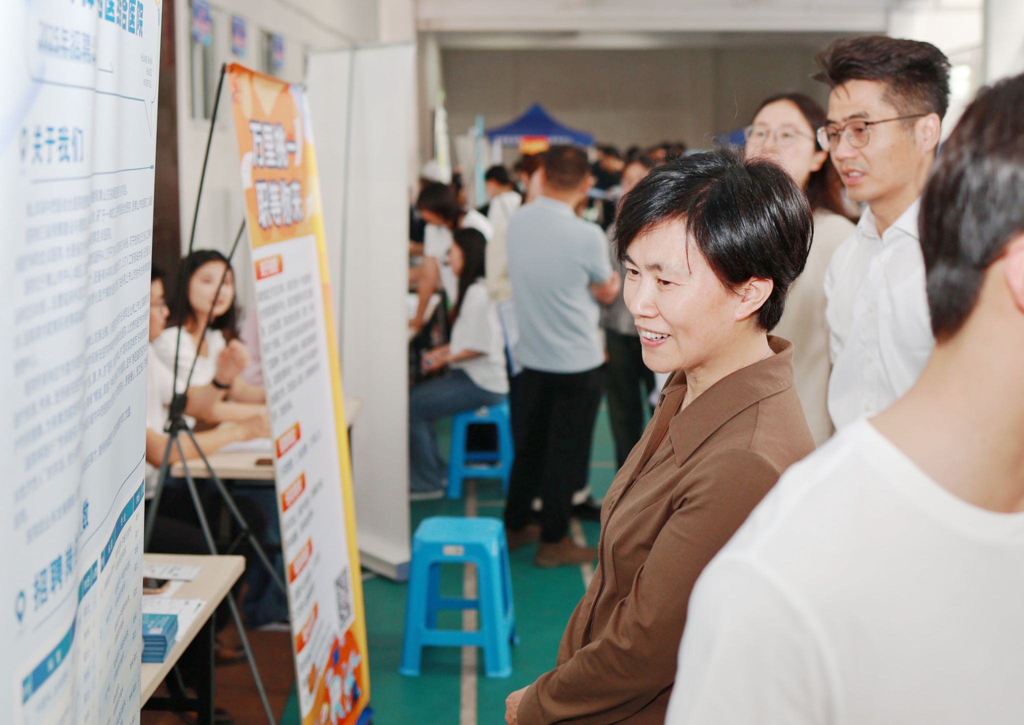 为深化校企合作,凝聚校友力量,助力毕业生高质量充分就业,5月15日,我校在滨江校区(北区)室内体育馆举办2025届毕业生春季第三场校园招聘会暨校友企业招聘会。本次招聘会汇聚了50余家优质用人单位,涵盖公立医院、生物医药企业、健康科技公司等多元领域,精准释放就业岗位近1000个,吸引500余名毕业生到场求职,现场投递简历2000余份,初步达成就业意向100余人。学校领导高度重视就业工作,校党委书记夏劲松、党委副书记贾贤燕来到招聘会现场指导,与用人单位负责人深入交流,介绍学校毕业生情况并向用人单位积极推荐。