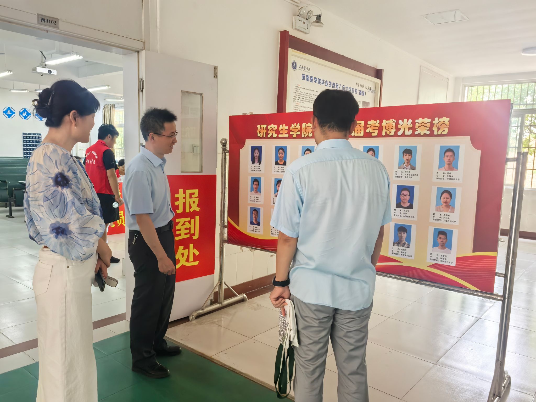 7月10日,428名研究生到校完成报到。迎新期间,校党委书记夏劲松,党委常委、副院长余结根深入报到现场、食堂、宿舍,详细了解新生报到情况和服务保障措施,与迎新工作人员进行深入交流,并与前来报到的新生及家长进行热情互动。