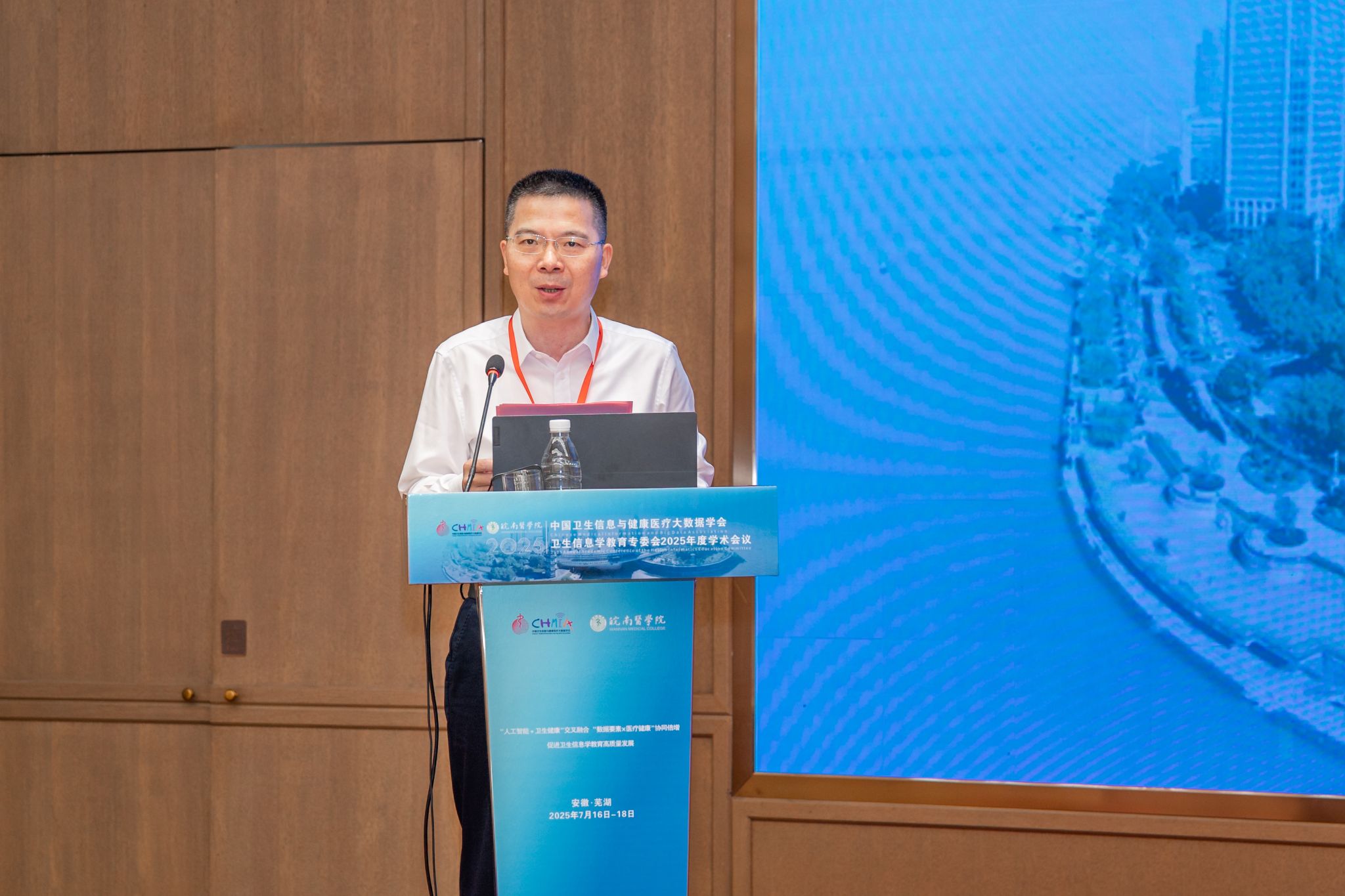 姚应水在致辞中对各位来宾表示诚挚欢迎,指出本次大会是响应国家“人工智能+”和“数据要素×”行动,着重推动我国医疗健康领域医工交叉AI科技创新与产业升级、人才培养与教育教学改革的重要契机,希望与会专家和优秀青年学者能够深入交流研讨,共享前沿成果,为健康医疗大数据、医疗人工智能科技创新与人才培养指引方向,共同推动数智技术与健康事业产业融合发展,切实推动科技创新在引领卫生信息学教育教学与人才培养方面起到的核心作用。