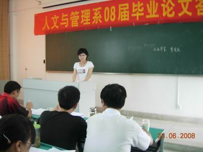 6月22-23日,人文与管理系2008届本科毕业论文答辩会在东教学楼106、107和西教学楼406、407教室进行。参加答辩会的除了有2008届信管、公管本科专业的71名同学和各答辩小组评委外,系其他年级部分同学也观摩了此次答辩会。