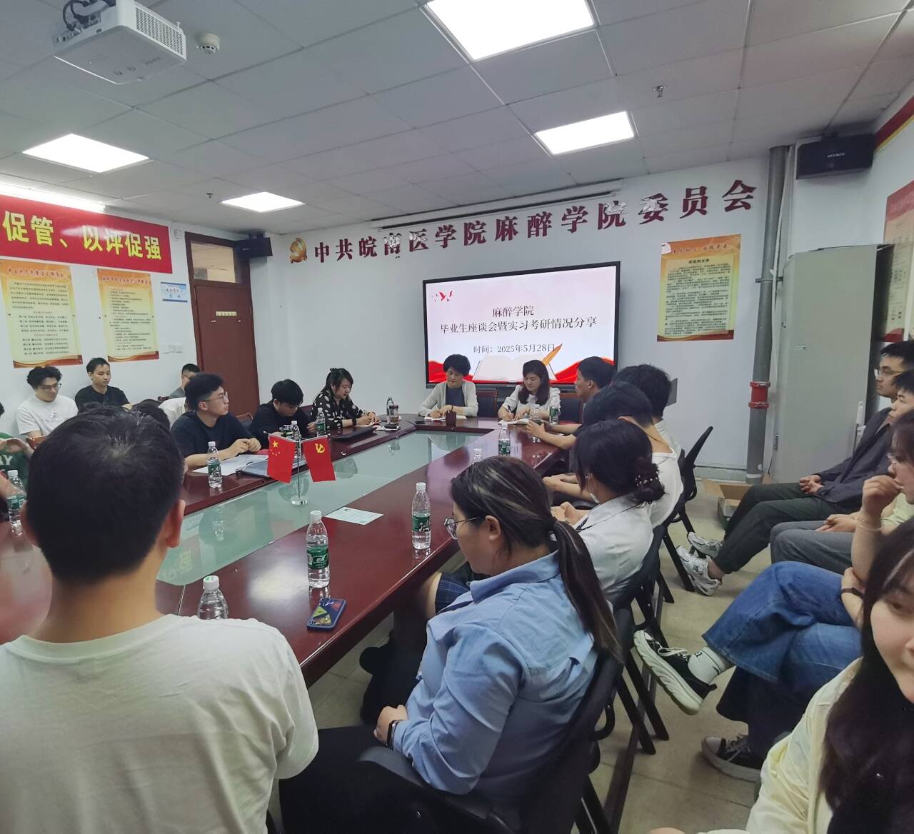 为提升学生实习实践能力,助力考研学子科学备考,5月28日下午,麻醉学院举办毕业生座谈会,各实习队分享实习、考研等情况。学院党委书记崔晓霞、党委副书记张卉、2020级辅导员汪玉婷和学生干部代表参会。会上,同学们分享了临床实习中的技能提升与团队协作经验,并从院校选择、复习规划、心态调整等方面传授考研实战技巧,对学院后续工作提出了合理建议。崔晓霞充分肯定座谈的意义,鼓励学生以榜样为镜,合理规划学业与职业发展,并向毕业生们提出了殷切期望。活动的开展为麻醉学子提供了宝贵的学习交流平台,进一步营造了积极向上的学风氛围,助力学生成长成才。
