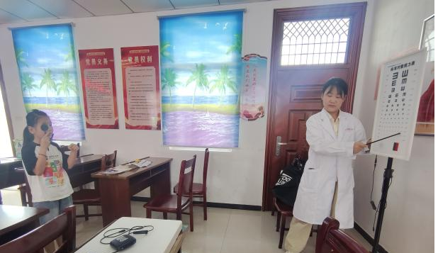 义诊服务接地气,健康关怀零距离。为落实健康中国战略,将公共卫生专业知识转化为实际服务,“芦花”志愿服务队设立义诊点,志愿者们分工开展血压、血糖、体脂检测,细致记录数据并提供个性化健康建议。活动开展的同时,还为青少年开展视力检查,并同步讲解用眼卫生知识。活动现场,志愿者耐心解答村民关于慢性病用药、夏季养生等问题,用贴心服务架起健康沟通的桥梁。