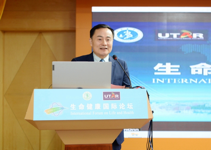 王广基院士以录播视频的形式致辞。他指出,本次论坛立足于双方协作优势,推动科学研究和人才培养的合作。希望大家广泛研讨、深入交流,积极寻找学术合作切入点,创新科学研究的合作模式与发展路径,共同为医药健康事业的发展和增进人民健康福祉作出积极贡献。相信通过开展学术交流,与会双方将联系更加紧密,合作更加深入,友谊更加深厚,发展空间更加广阔。